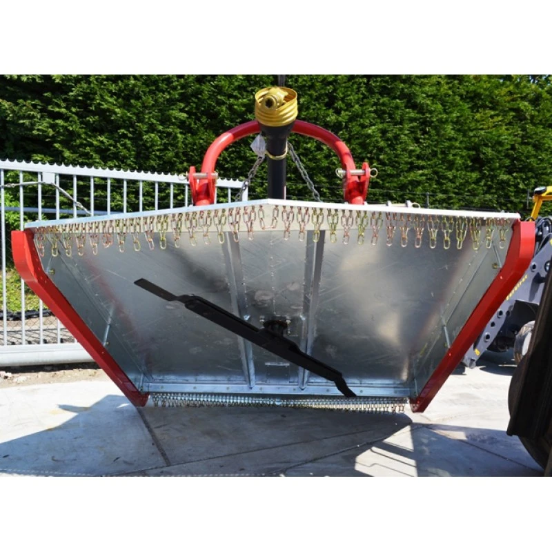 Deze gegalvaniseerde weidebloter is uitgevoerd met 1 rotor met daaraan 2 vervangbare slingermessen en 2 glijsloffen aan de zijkant van de maaier. Door deze glijsloffen is de hoogte van de bloter gemakkelijk verstelbaar. Deze bloter is uitermate geschikt voor het gebruik achter de compact tractor. Door de zware slingermessen worden eventuele takken en uitwerpselen kapot geslagen.